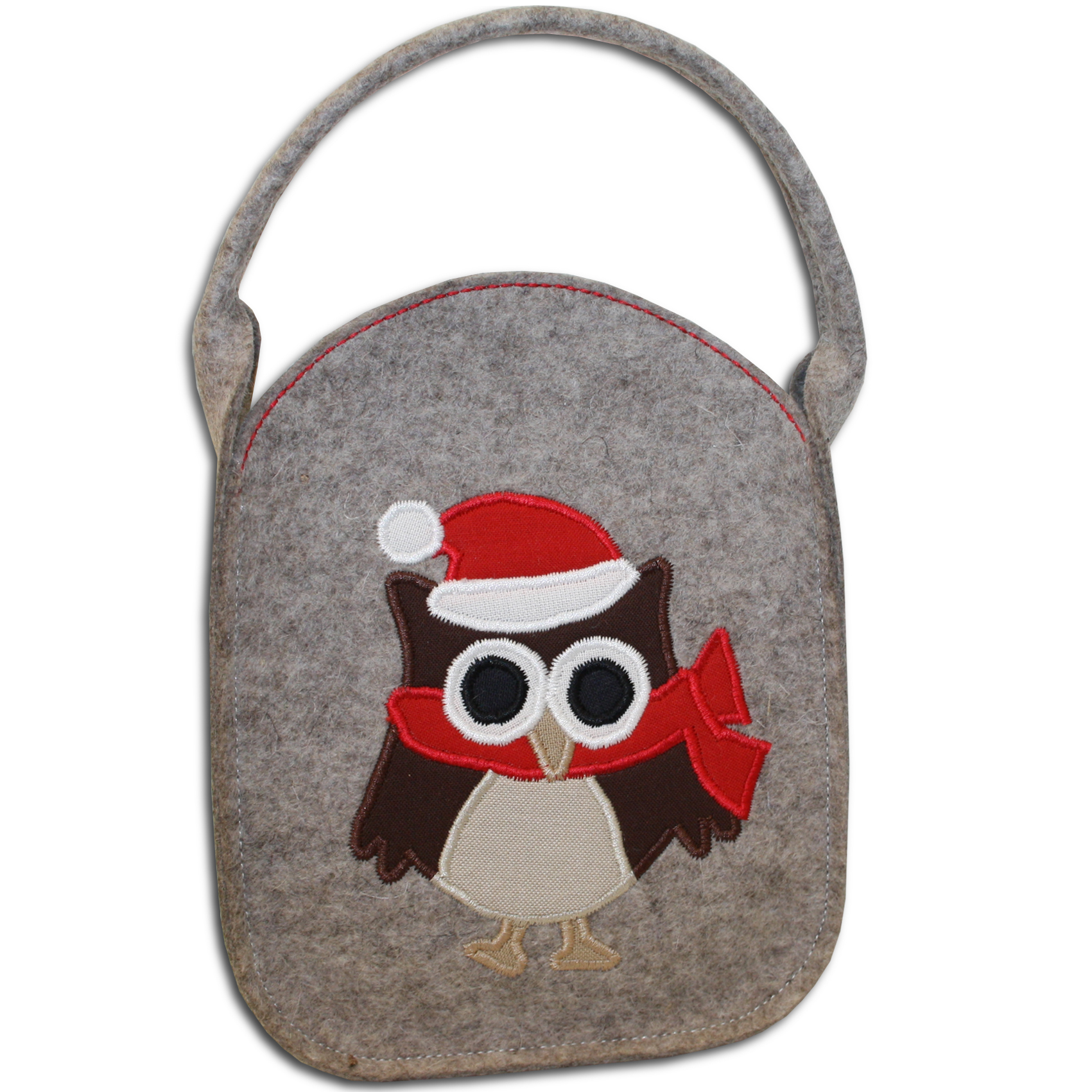 Wer sagt, dass der Nikolaus immer nur Stiefel bringen muss? Diese Beutetasche aus Filz mit lustiger Eulenapplikation ist mindestens genauso hübsch!